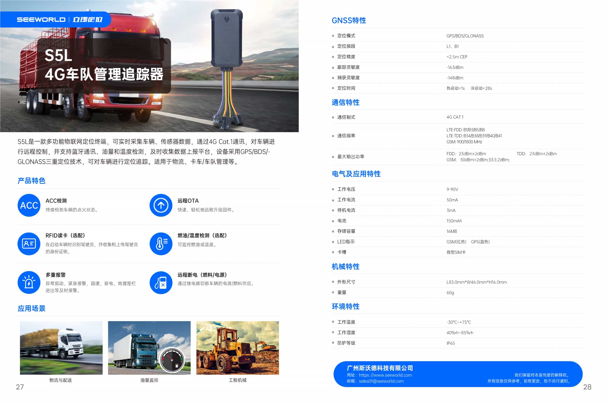 S5L是一款多功能物聯(lián)網(wǎng)定位終端,可實時采集車輛、傳感器數(shù)據(jù),通過4G Cat.1通訊,對車輛進(jìn)行遠(yuǎn)程控制,并支持藍(lán)牙通訊、油量和溫度檢測,及時收集數(shù)據(jù)上報平臺,設(shè)備采用GPS/BDS/-GLONASS三重定位技術(shù),可對車輛進(jìn)行定位追蹤。適用于物流、卡車/車隊管理等。